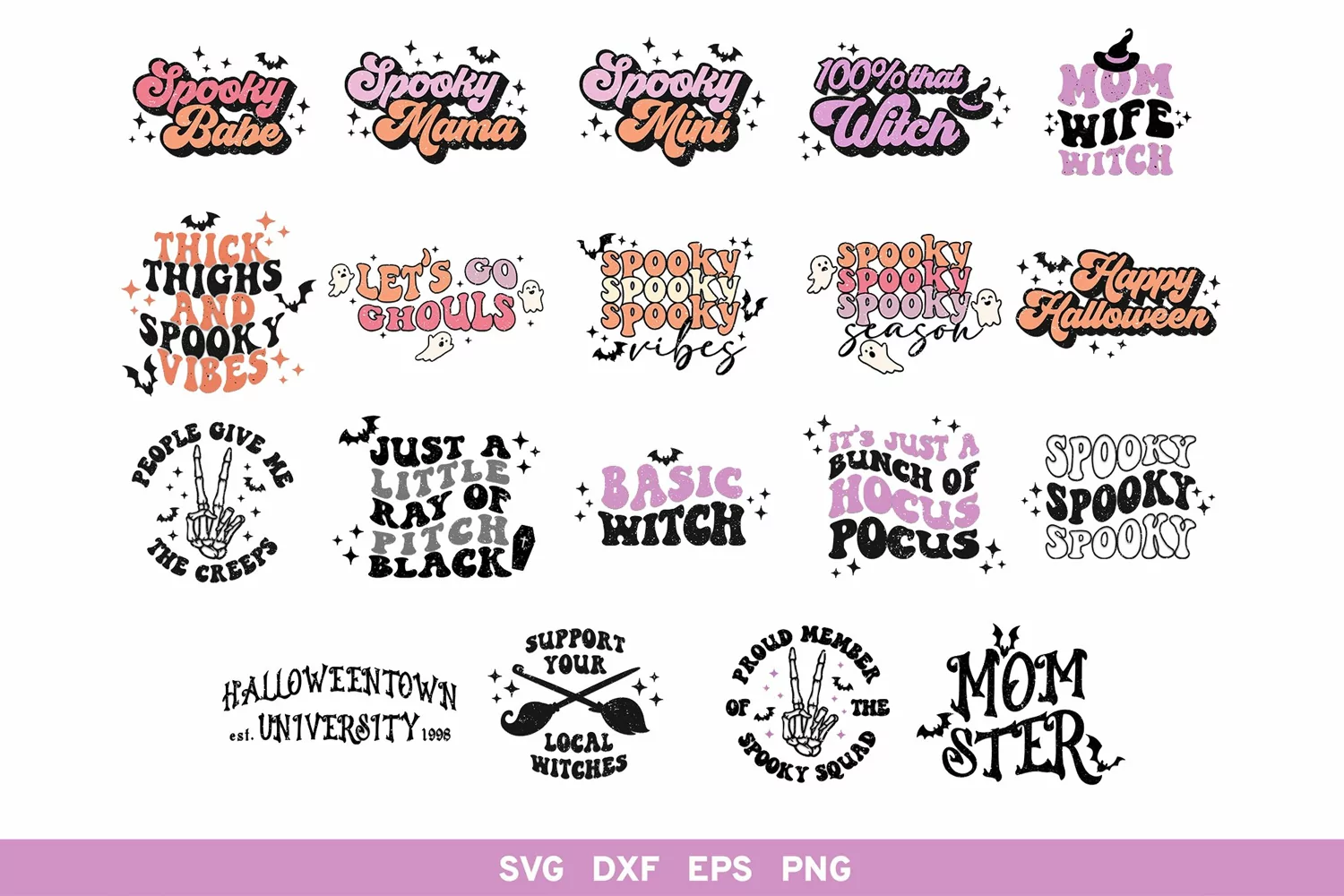 Halloween SVG Bundle, Halloween Quotes, Spooky, Witch PNG, Retro Halloween Svg, Basic Witch, Halloweentown svg, Skeleton, That Witch, Spooky Mama Mini, Thick Thighs Spooky Vibes, Halloween Shirt Svg, Waterslides, Sublimation, Cricut Silhouette