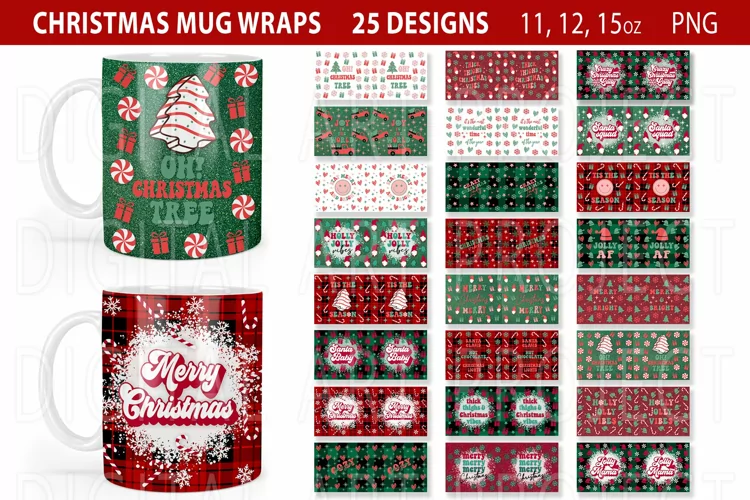Christmas Mug Wraps PNG Bundle, Christmas Wrap PNG, Christmas PNG, Christmas Mug Full Wrap