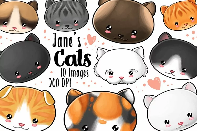 Kawaii Cat Faces Clipart Set - Cats Download - Persian - Siamese - Scottish Fold - Tabby - Calico - Snowshoe - Tuxedo - Black cat - White Cat - Planner Supplies - Commercial Use