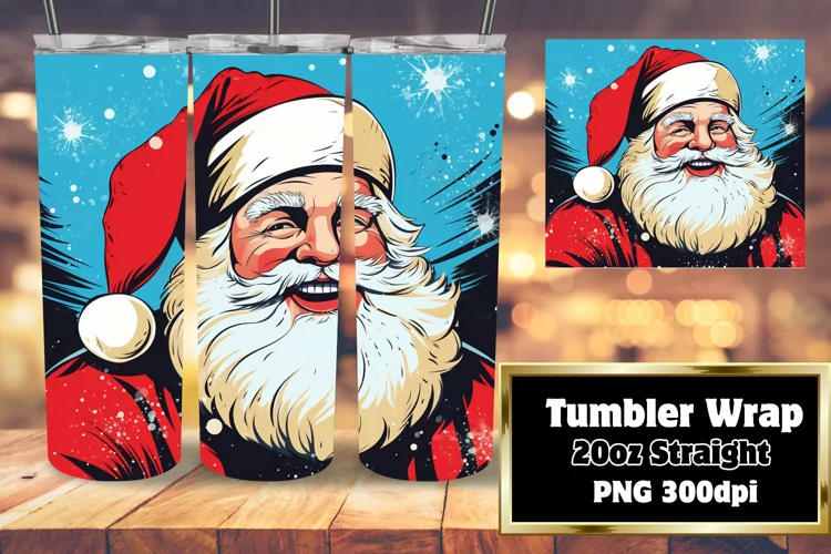 Sublimation Design Christmas Tumbler Pop Art Sublimation Straight Tumbler Skinny Tumbler Wrap Santa Claus Tumbler Wrap Gift For Christmas Holiday 3d Tumbler Wrap 3d Christmas Tumbler Wrap Inflated Tumbler Wrap