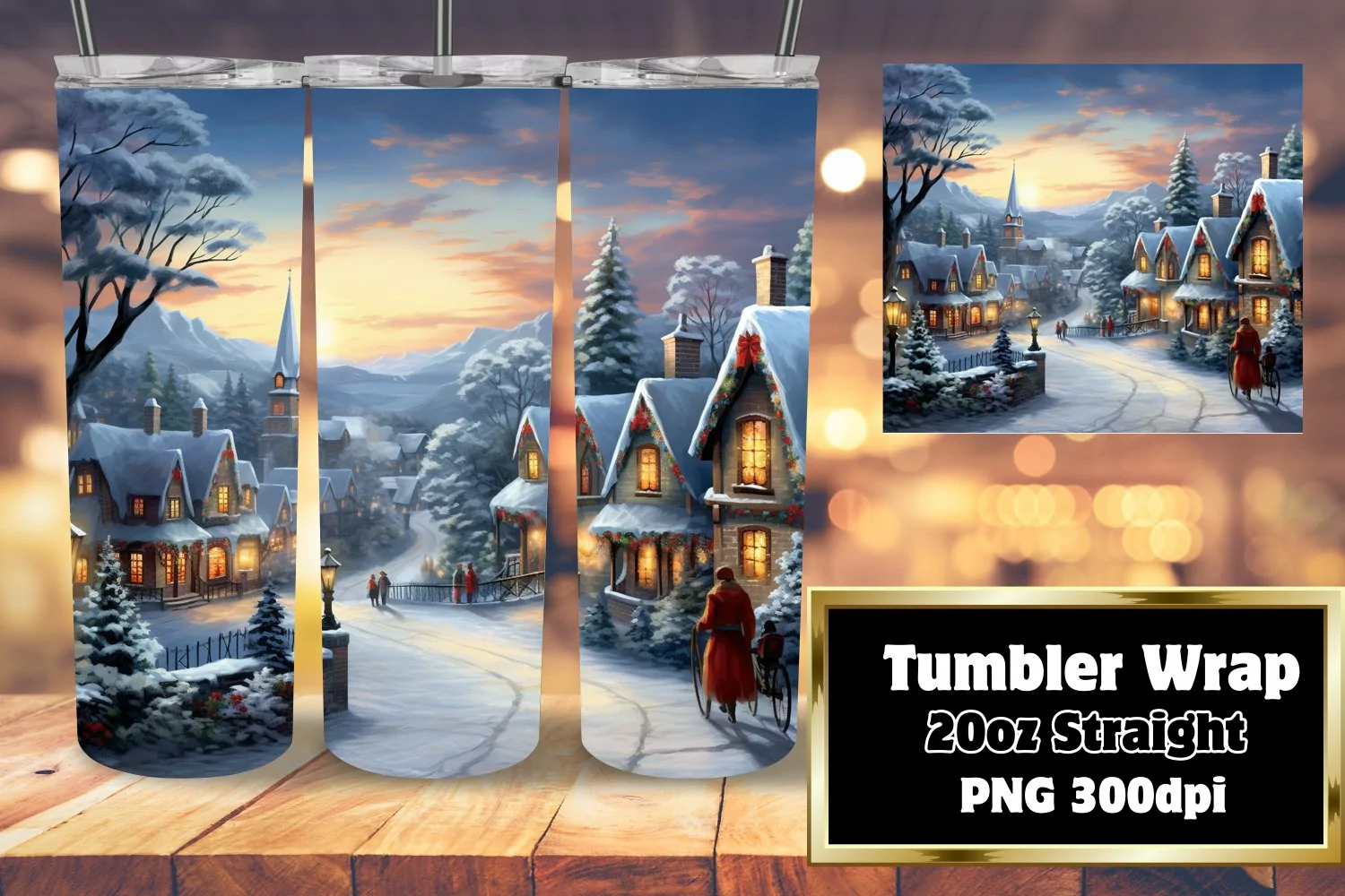 Snowy Elegance Village Tumbler Wrap 20oz example image 1