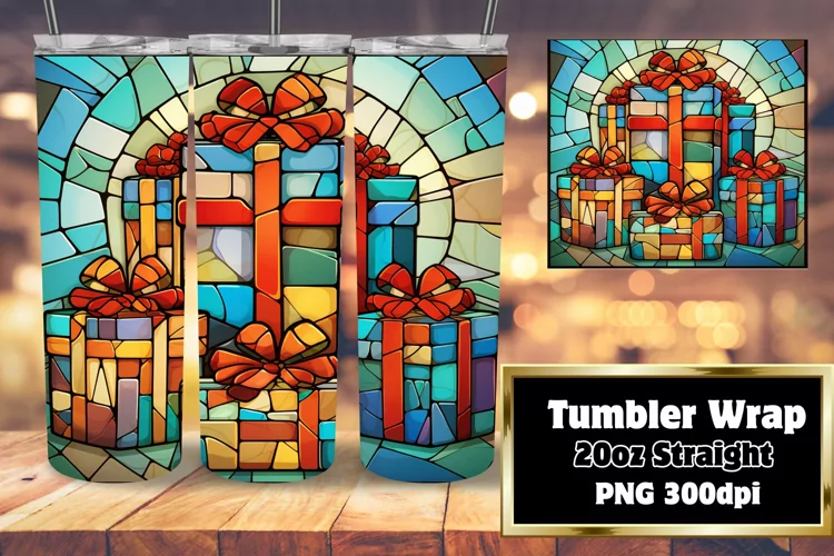 Sublimation Design Christmas Tumbler Straight Tumbler Skinny Tumbler Wrap Stained Glass Sublimation Santa Claus Tumbler Wrap Gift For Christmas Holiday 3d Tumbler Wrap 3d Christmas Tumbler Wrap Inflated Tumbler Wrap