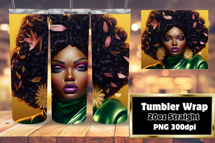 Sublimation Design Flower Sublimation Black Woman Png Christmas Tumbler 3d Black Woman Straight Tumbler Skinny Tumbler Wrap Gift For Christmas Holiday African American Tumbler Wrap 3d Tumbler Wrap