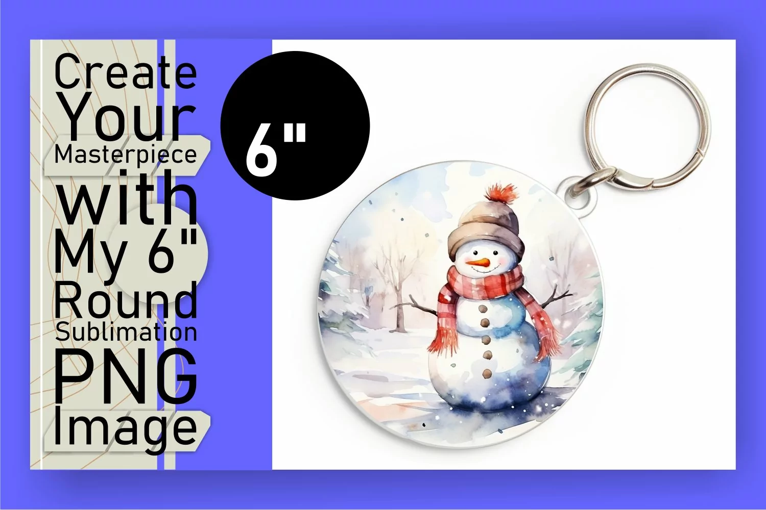 Snowman Watercolor Christmas Ornaments Round Ornaments Sublimation Design Sublimation Printing Car Coaster Christmas Sublimation Designs Keychain Sublimation Snowman Christmas Ornaments 3d Christmas Round Sticker