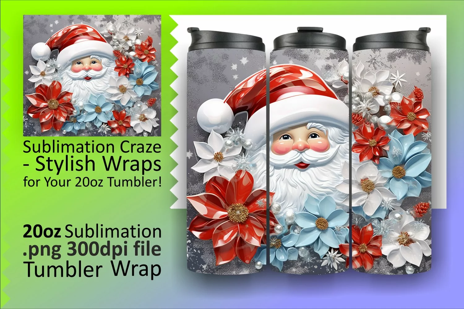 Christmas Elegance: 3D Santa Claus Tumbler Wrap Design