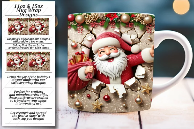 Sublimation Design Holiday Sublimation 11oz Mug Wrap 15oz Mug Wrap 3d Mug Wrap Santa Claus Mug Wrap 3d Hole In Wall 3d Santa Claus Sublimation 3d Snowman Sublimation Mug Wrap Glossy Sublimation