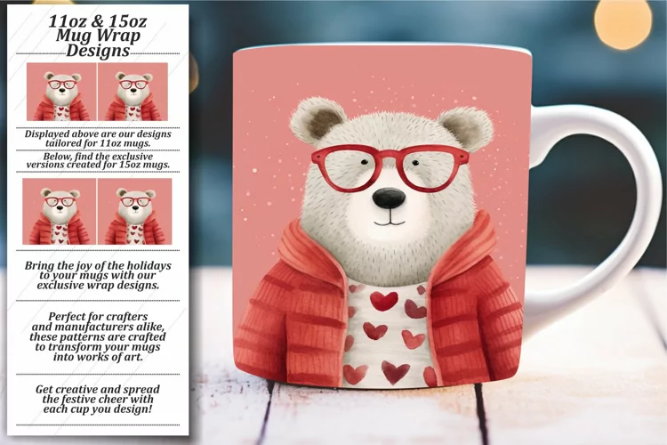 Heartwarming Animals: Watercolor Valentine's Mug Wrap Bear