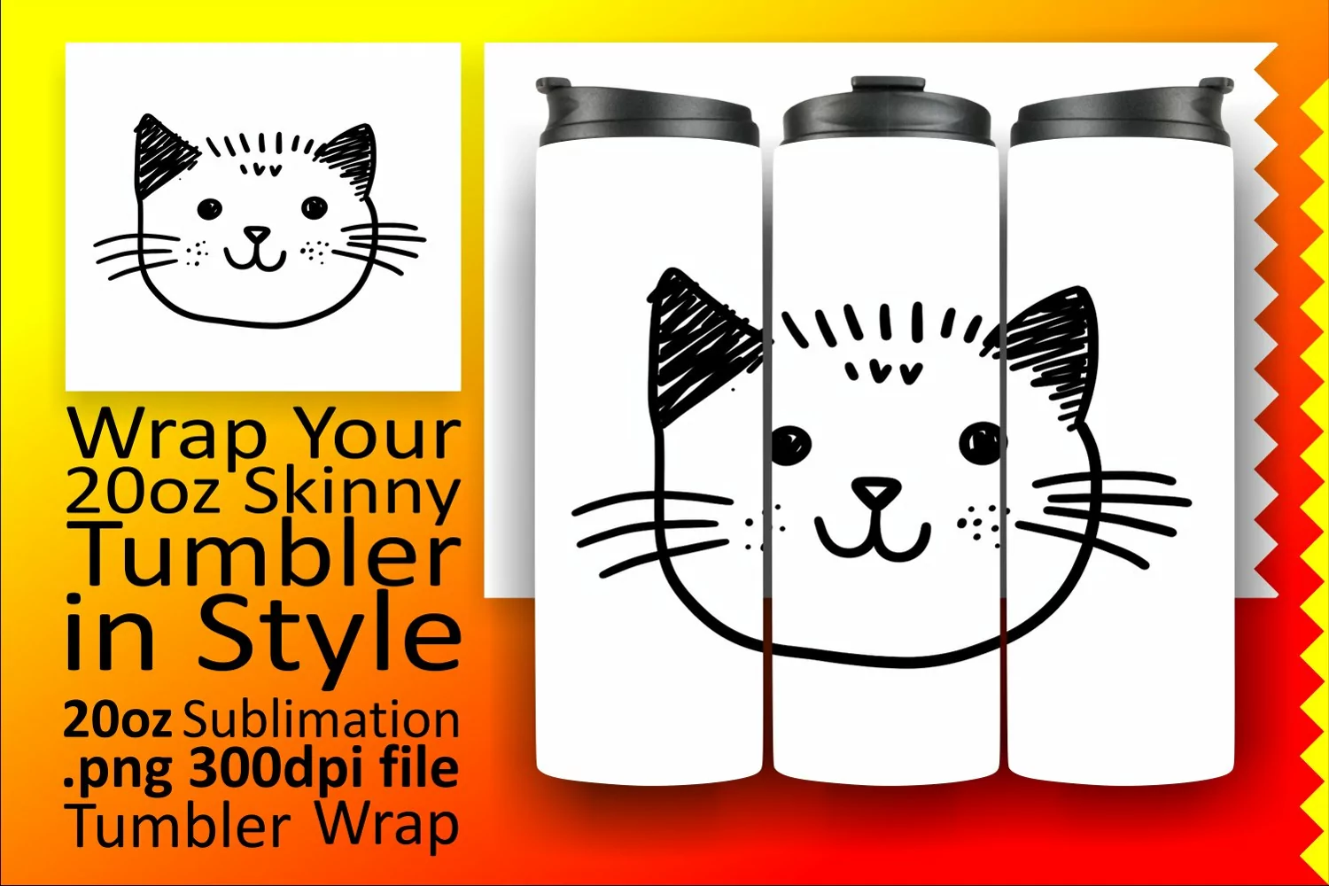 Cat Clipart Sublimation Design Cat Lover Png Black Cat Sublimation Straight Tumbler Skinny Tumbler Wrap Watercolor Tumbler Wrap Cat Tumbler Wrap Kitty Tumbler Wrap 3d Cat Sublimation