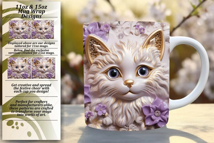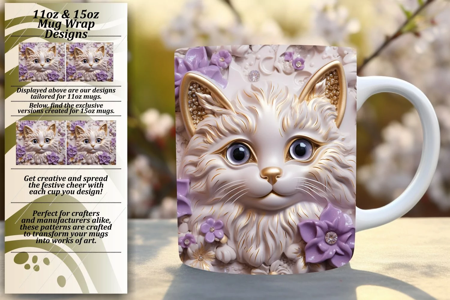 3D Cat Elegance Unveiled: Glossy Mug Wrap Art