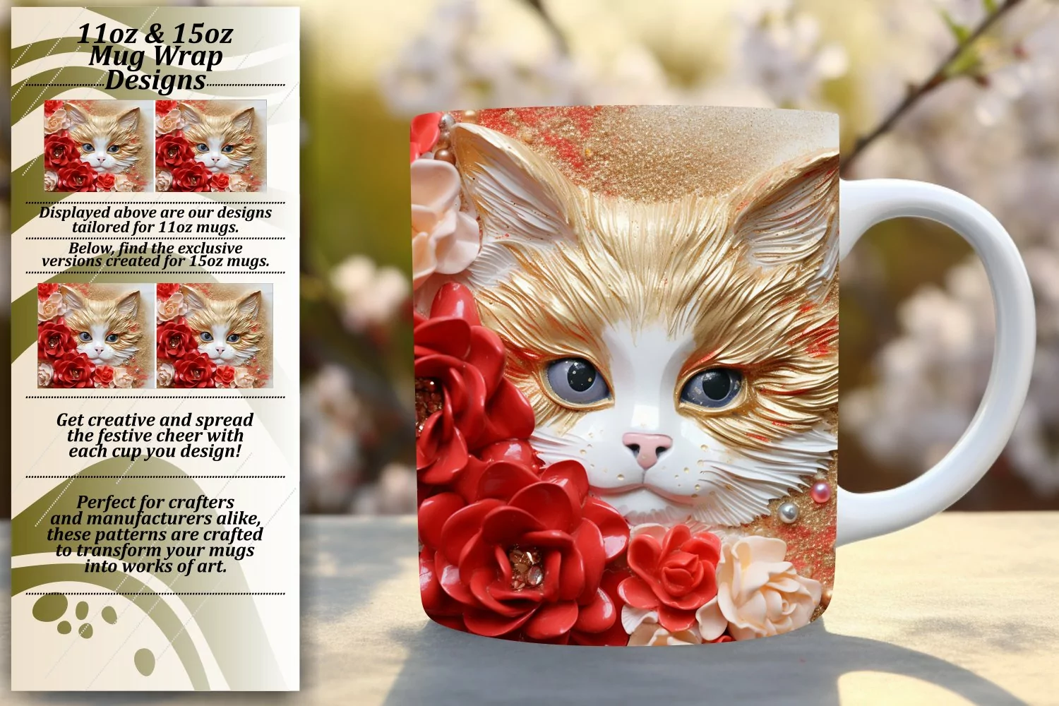 Similar Design Products to Blooming 3D Cat Magic: Vibrant Mug Wrap Charms
