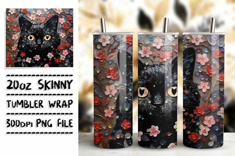 Cat Clipart Sublimation Design Cat Lover Png Black Cat Sublimation Straight Tumbler Skinny Tumbler Wrap Cat Tumbler Wrap Kitty Tumbler Wrap 3d Cat Sublimation