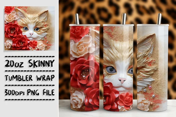 Similar Design Products to Whimsical 3D Feline Elegance: Glossy Tumbler Charm
