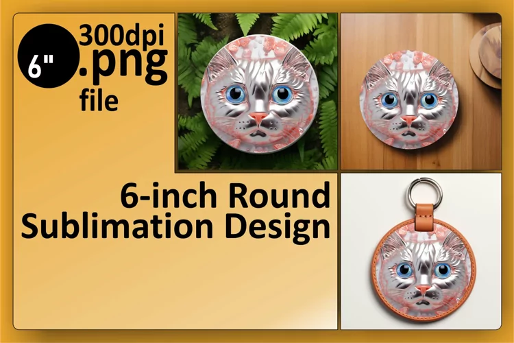 Round Ornaments Sublimation Design Sublimation Printing Car Coaster Glitter Cat Cat Sublimation Cat Lover Png Keychain Sublimation Cat Keychain 3d Cat Design