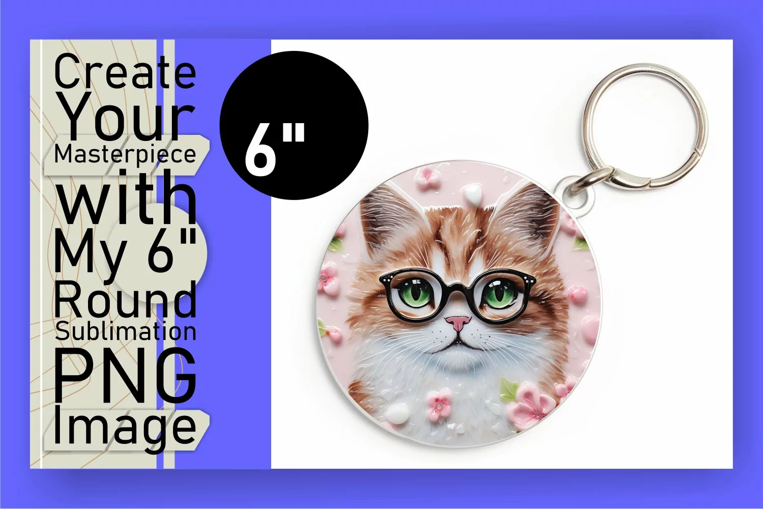 Round Ornaments Sublimation Design Sublimation Printing Car Coaster Glitter Cat Cat Sublimation Cat Lover Png Keychain Sublimation Cat Keychain 3d Cat Design