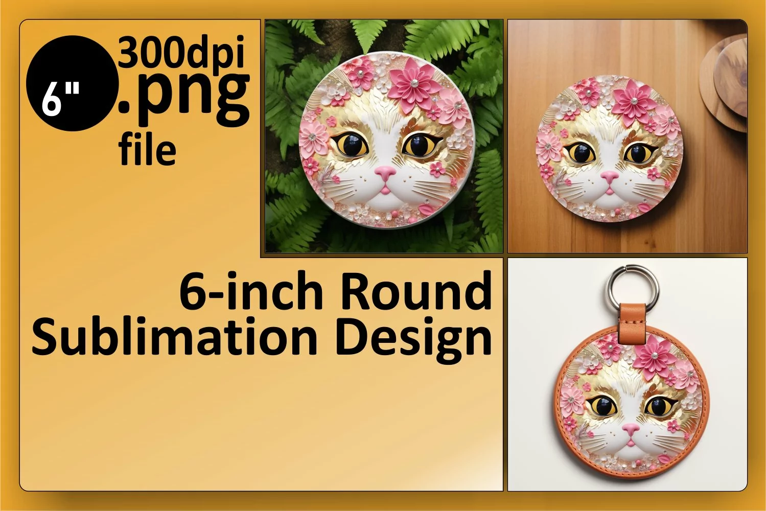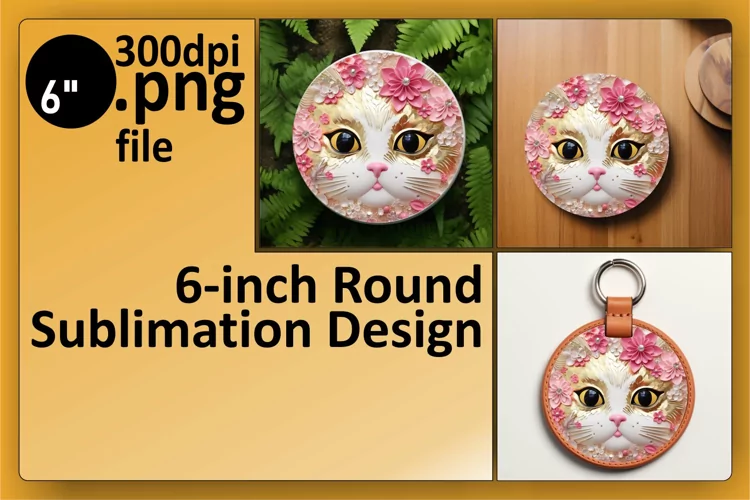 Round Ornaments Sublimation Design Sublimation Printing Car Coaster Glitter Cat Cat Sublimation Cat Lover Png Keychain Sublimation Cat Keychain 3d Cat Design