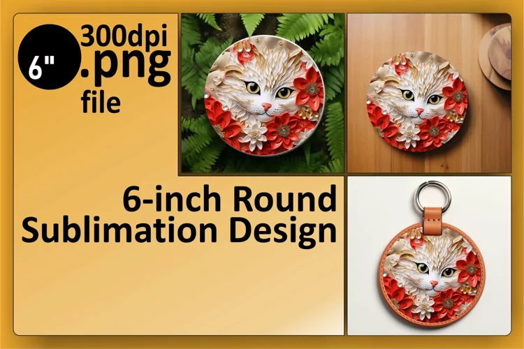 Round Ornaments Sublimation Design Sublimation Printing Car Coaster Glitter Cat Cat Sublimation Cat Lover Png Keychain Sublimation Cat Keychain 3d Cat Design
