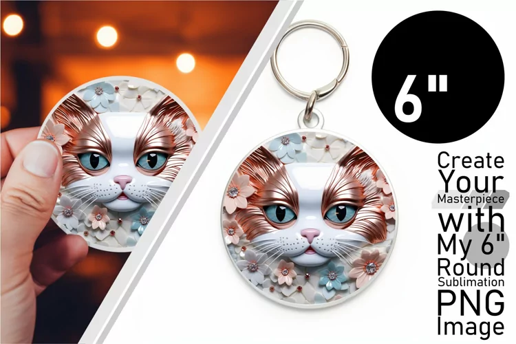 Round Ornaments Sublimation Design Sublimation Printing Car Coaster Glitter Cat Cat Sublimation Cat Lover Png Keychain Sublimation Cat Keychain 3d Cat Design