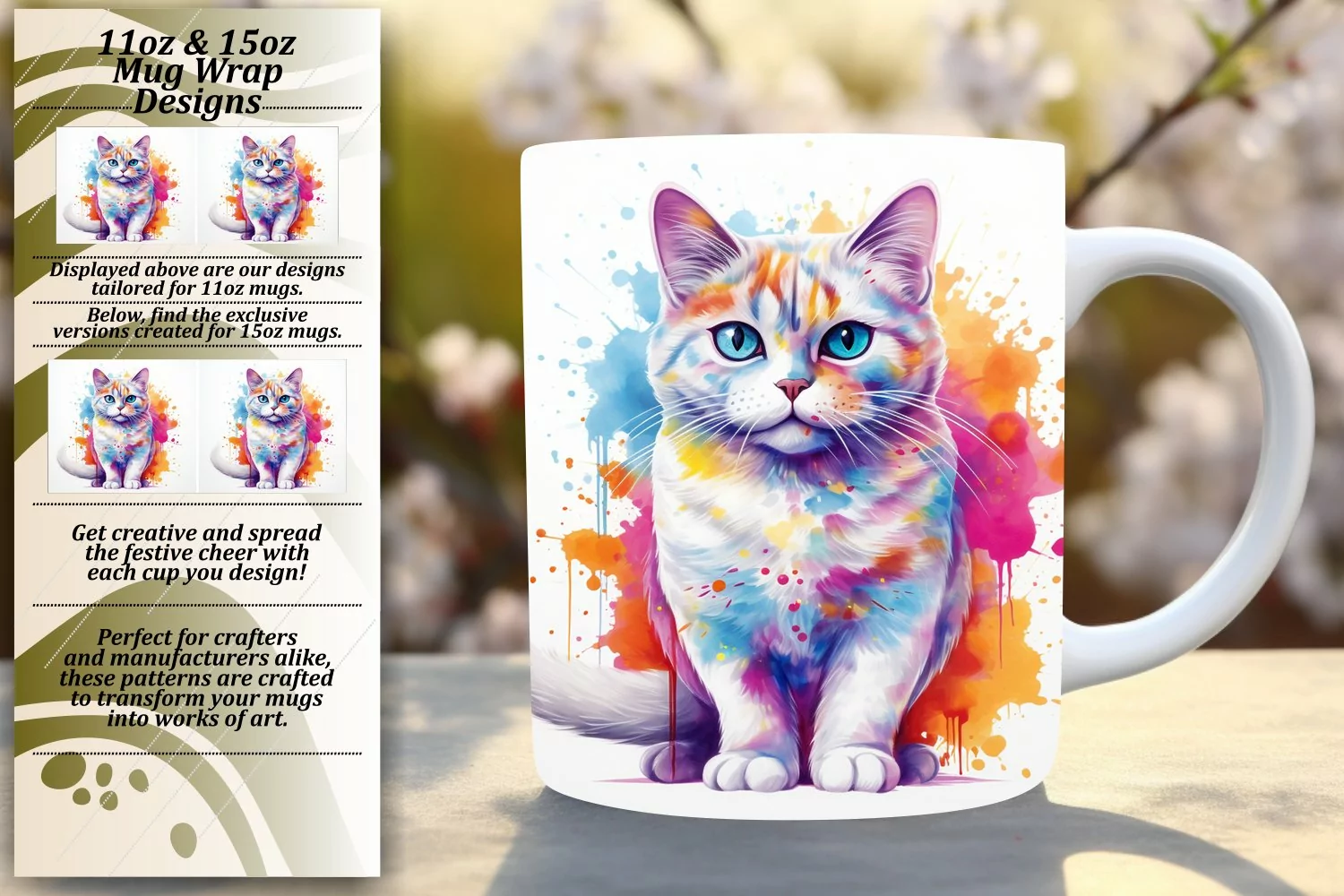 Vibrant Feline Artistry: Colorful Mug Wrap