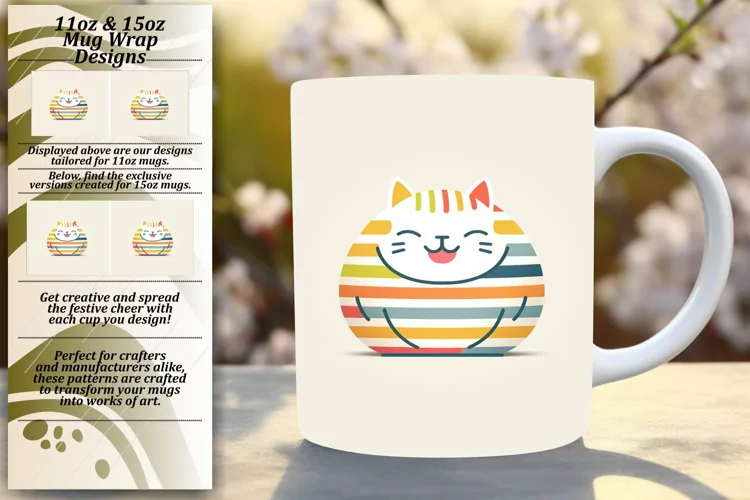 Enchanting Feline Art: Colorful Mug Wrap example image 1