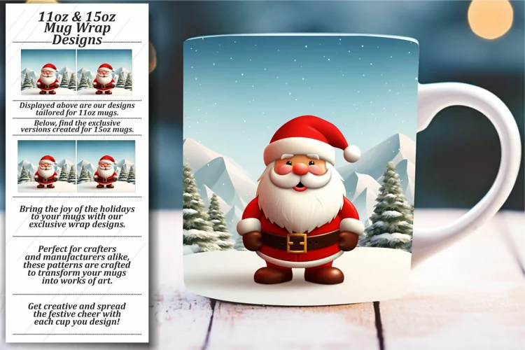 Sublimation Design Holiday Sublimation 11oz Mug Wrap 15oz Mug Wrap 3d Mug Wrap 3d Christmas Mug Wrap Santa Claus Mug Wrap 3d Santa Claus Sublimation Glossy Sublimation 3d Animals Png