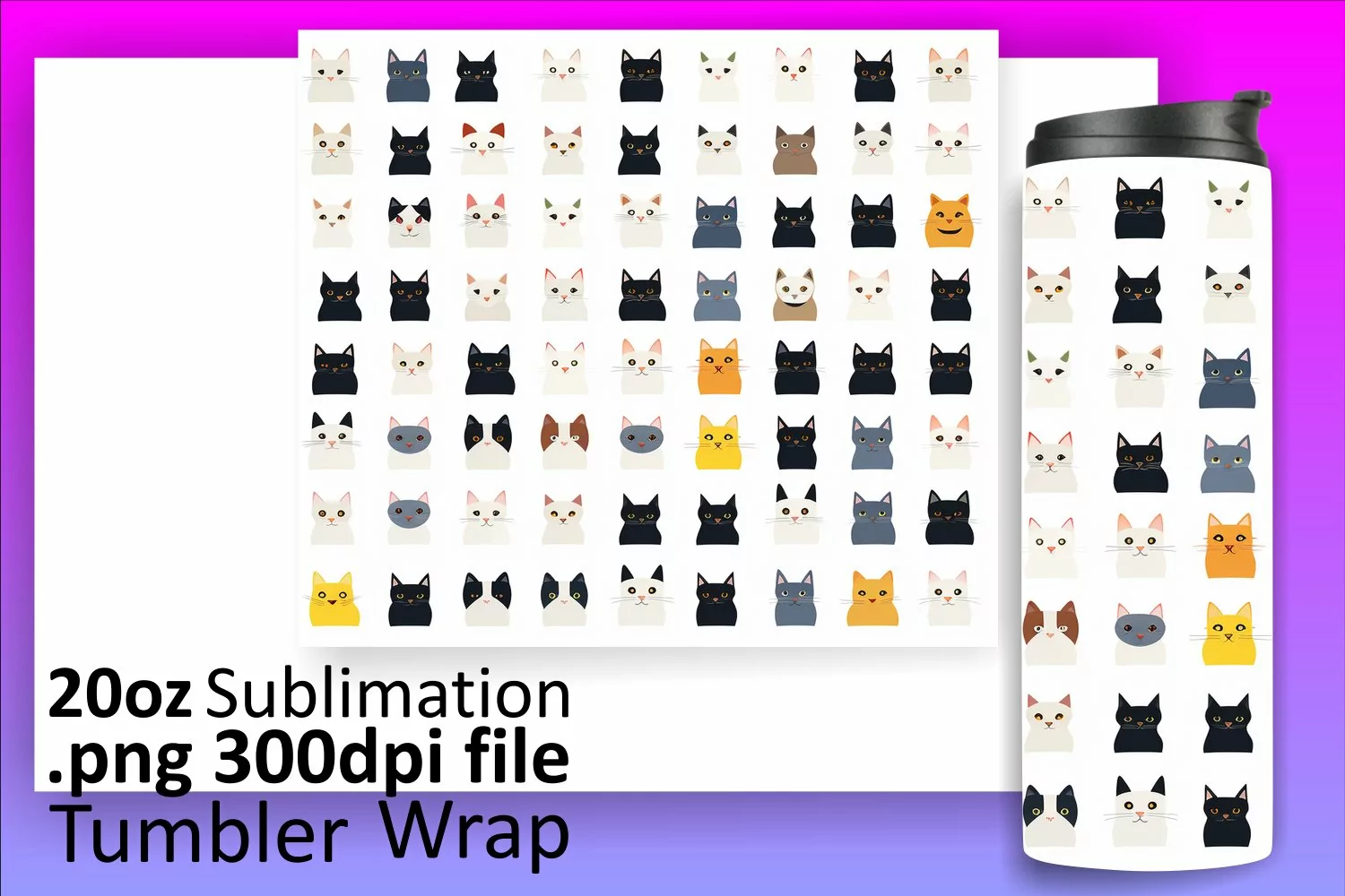 Cat Clipart Sublimation Design Cat Lover Png Black Cat Sublimation Straight Tumbler Skinny Tumbler Wrap Cat Tumbler Wrap Kitty Tumbler Wrap 3d Cat Sublimation