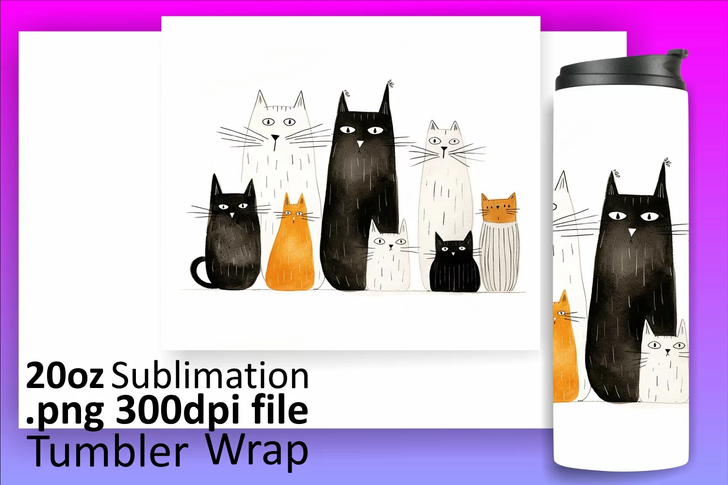 Cat Clipart Sublimation Design Cat Lover Png Black Cat Sublimation Straight Tumbler Skinny Tumbler Wrap Cat Tumbler Wrap Kitty Tumbler Wrap 3d Cat Sublimation