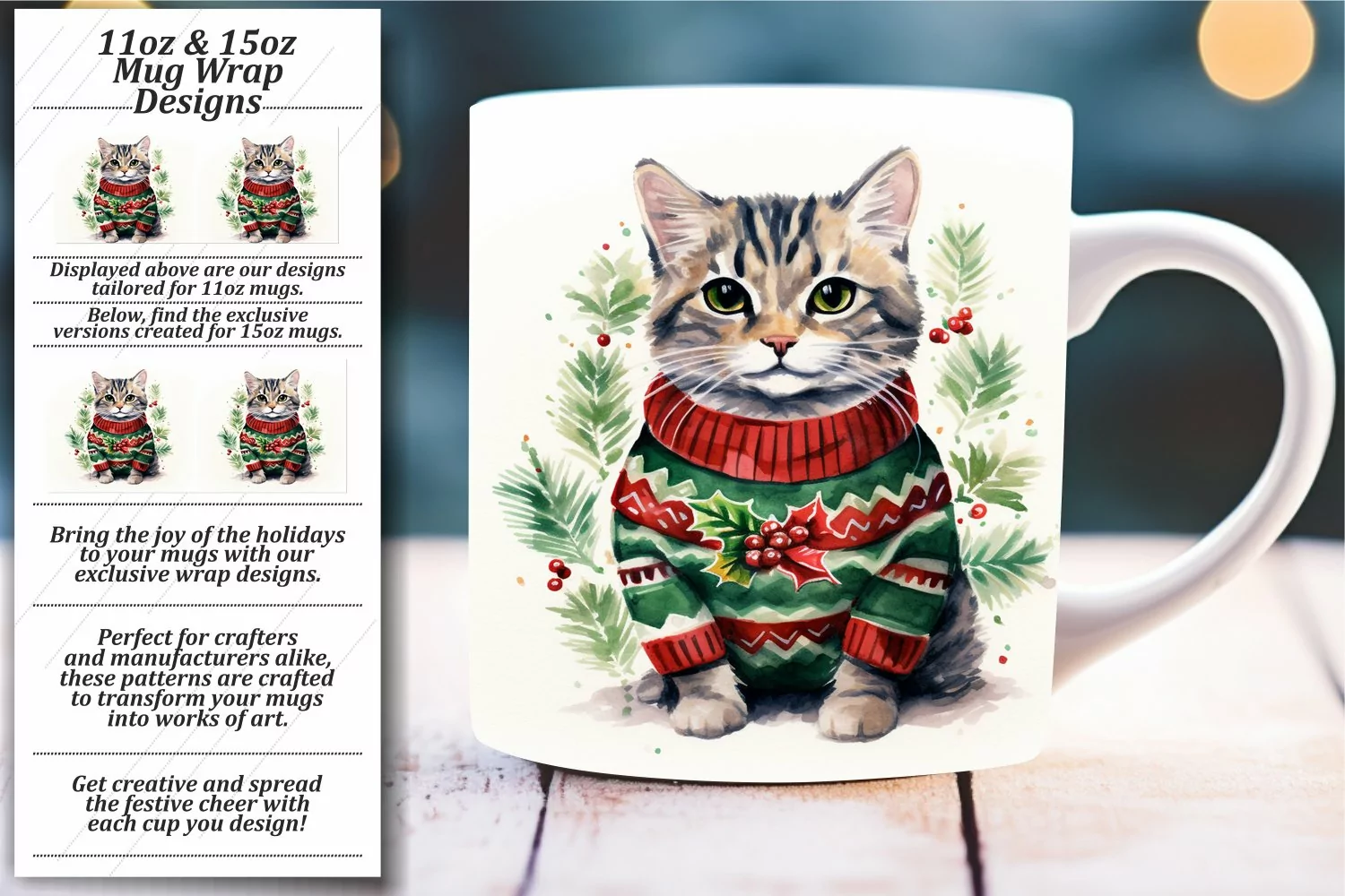 Jolly Xmas Cat Mug Wrap: 11oz/15oz