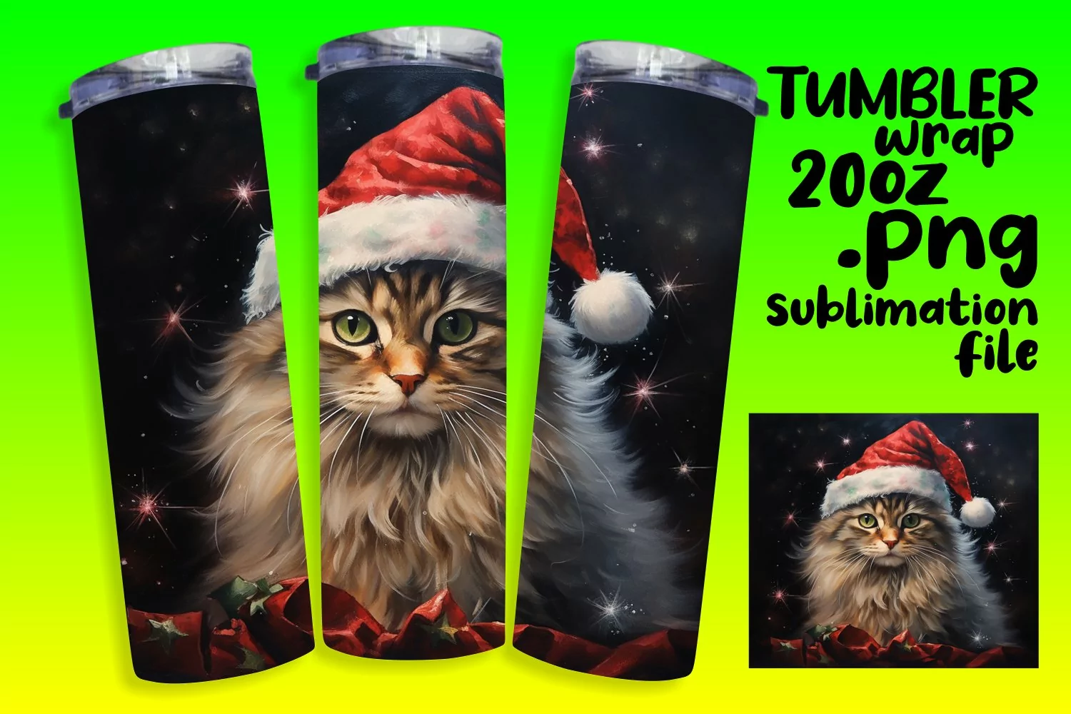 Sublimation Design Cat Lover Png Black Cat Sublimation Straight Tumbler Skinny Tumbler Wrap Christmas Tumbler Wrap Christmas Cat Png Cat Tumbler Wrap 3d Cat Sublimation Cat Santa Claus Png