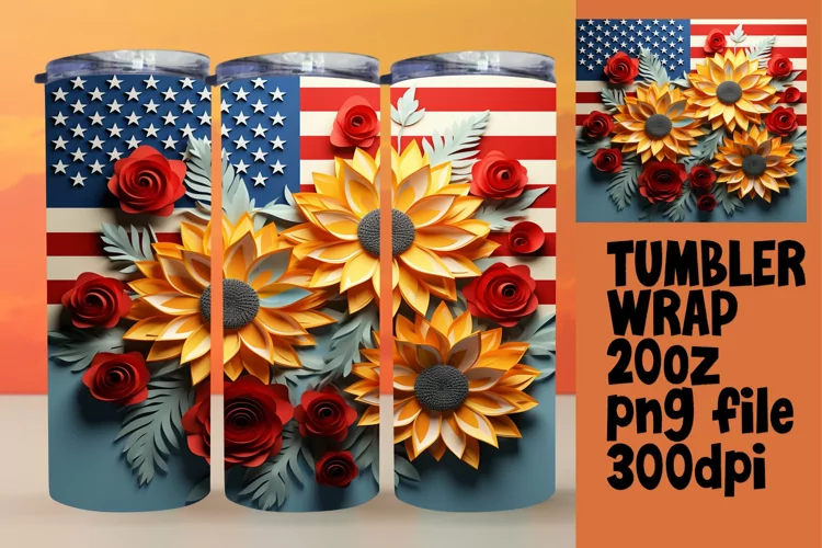 Independence Day Watercolor Pattern Sublimation Design Patriotic Sublimation American Flag Sublimation Skinny Tumbler Wrap Patriotic Tumbler Wrap Flower Tumbler Wrap Sunflower Tumbler Wrap 3d Tumbler Wrap