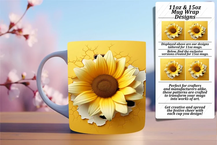 Coffee Cup Sublimation Design Birthday Mug Wrap 11oz Mug Wrap 15oz Mug Wrap Sunflower Mug Wrap 3d Mug Wrap 3d Flower Mug Wrap Glossy Sublimation 3d Hole In Wall Png