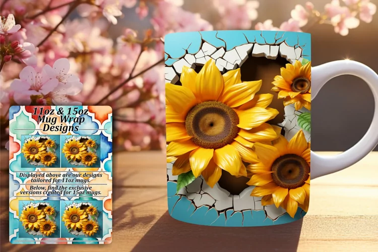Coffee Cup Sublimation Design Birthday Mug Wrap 11oz Mug Wrap 15oz Mug Wrap Sunflower Mug Wrap 3d Mug Wrap 3d Flower Mug Wrap Glossy Sublimation 3d Hole In Wall Png
