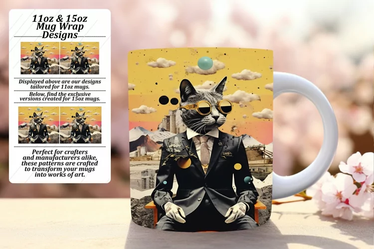 Similar Design Products to Expressive Cat Art on Mug Wraps: Sublimation