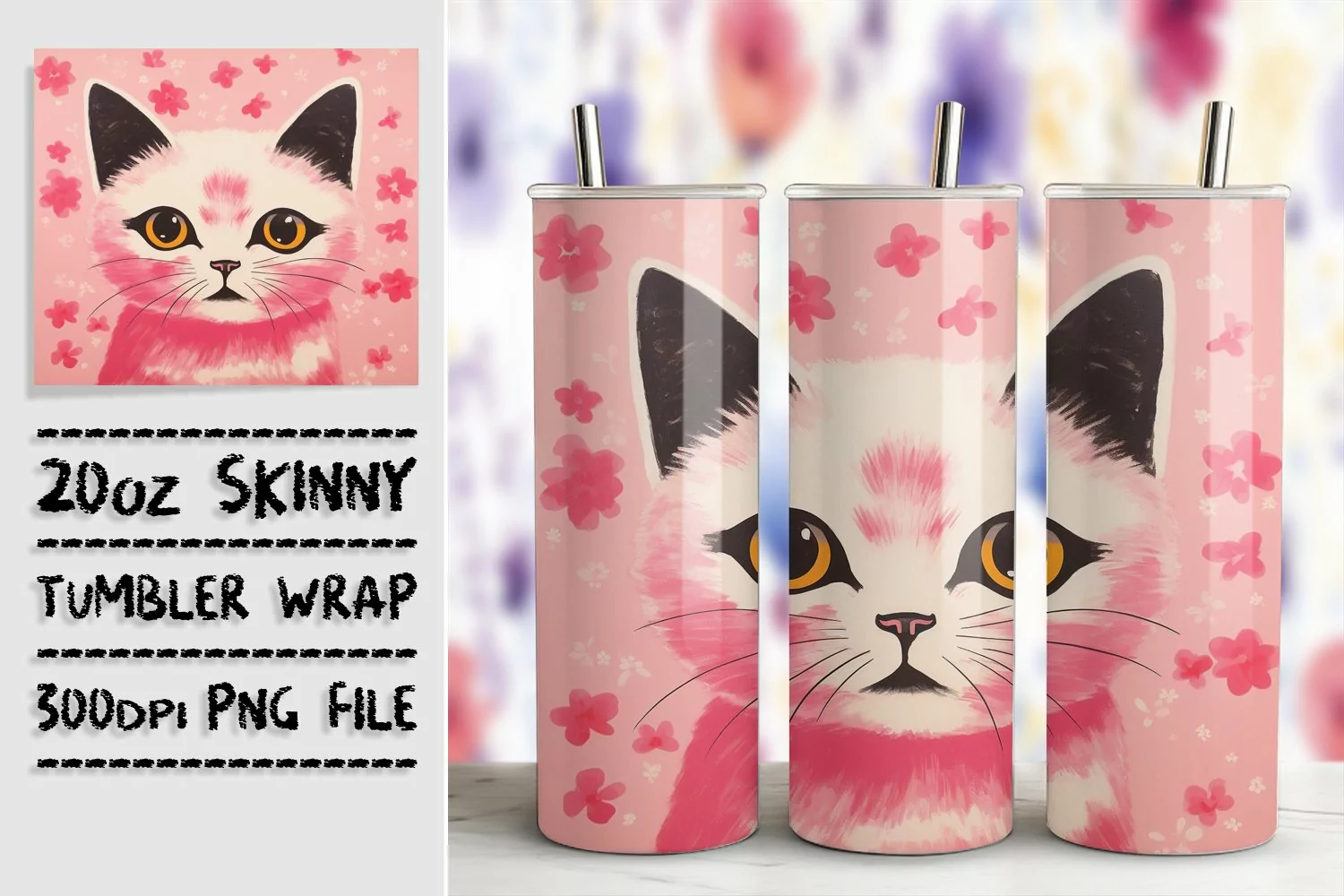 Cat Clipart Sublimation Design Cat Lover Png Black Cat Sublimation Straight Tumbler Skinny Tumbler Wrap Cat Tumbler Wrap Kitty Tumbler Wrap 3d Cat Sublimation