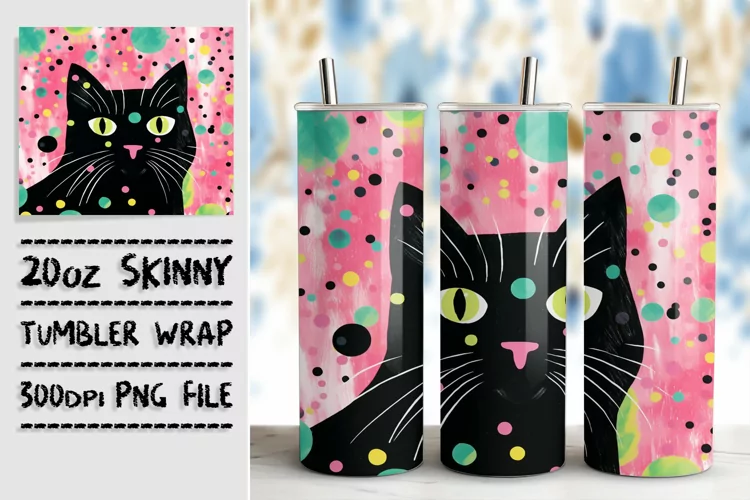Cat Clipart Sublimation Design Cat Lover Png Black Cat Sublimation Straight Tumbler Skinny Tumbler Wrap Cat Tumbler Wrap Kitty Tumbler Wrap 3d Cat Sublimation