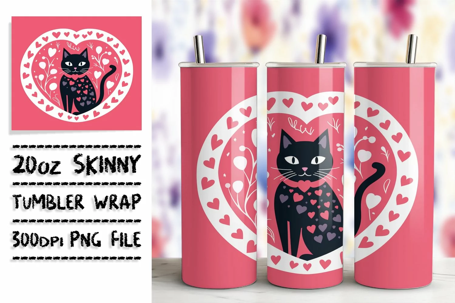Cat Clipart Sublimation Design Cat Lover Png Black Cat Sublimation Straight Tumbler Skinny Tumbler Wrap Cat Tumbler Wrap Kitty Tumbler Wrap 3d Cat Sublimation