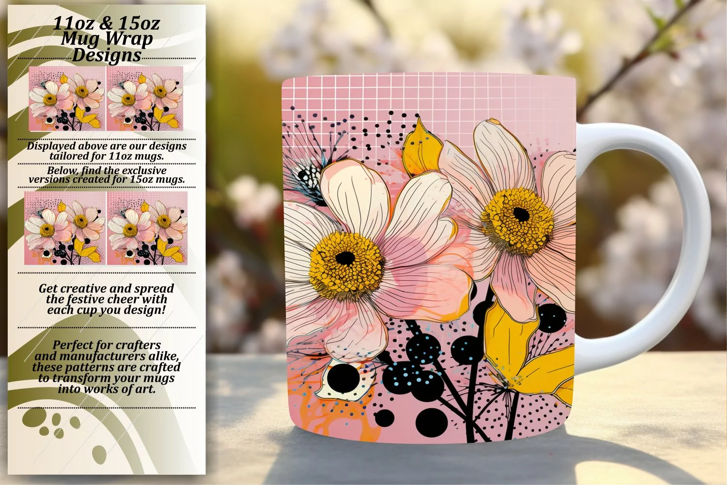 Vibrant Floral Art Mug Sublimation - 11oz/15oz example image 1