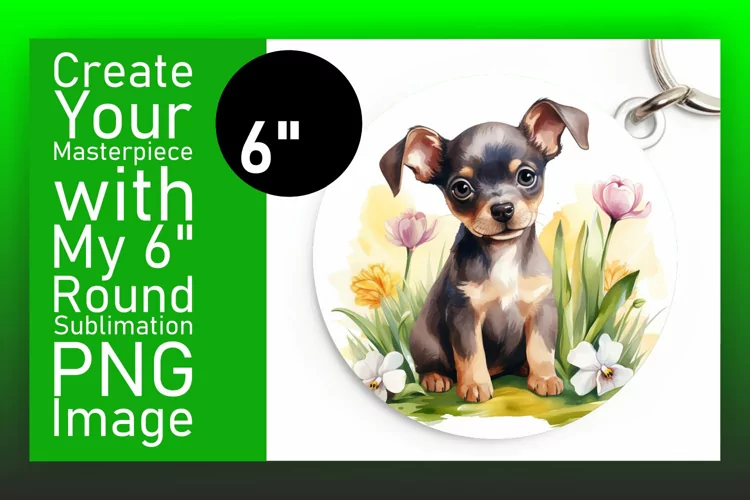 Round Ornaments Watercolor Dog Sublimation Design Sublimation Printing Flower Sublimation Car Coaster Dog Sublimation Design Keychain Sublimation Keychain Sublimation Design Dog Breeds Png