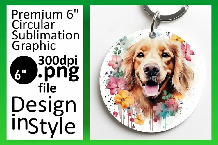 Round Ornaments Watercolor Dog Sublimation Design Sublimation Printing Flower Sublimation Car Coaster Dog Sublimation Design Keychain Sublimation Keychain Sublimation Design Dog Breeds Png