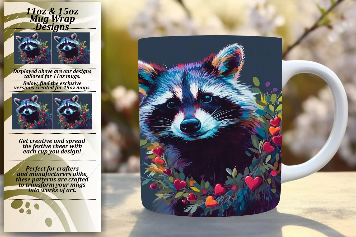 • PNG file for an 11oz mug, dimensions 8.5 x 3.5 inches, 300dpi.