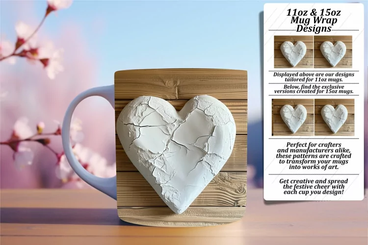Coffee Cup Sublimation Design 11oz Mug Wrap 15oz Mug Wrap Valentines Mug Wrap 3d Mug Wrap 3d Hole In Wall Sublimation Glossy Sublimation 3d Heart Mug Wrap 3d Heart Sublimation Design