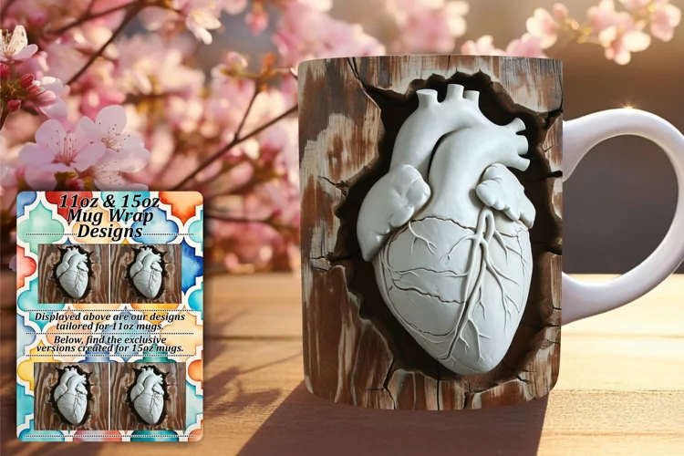 Coffee Cup Sublimation Design 11oz Mug Wrap 15oz Mug Wrap Valentines Mug Wrap 3d Mug Wrap 3d Hole In Wall Sublimation Glossy Sublimation 3d Heart Mug Wrap 3d Heart Sublimation Design