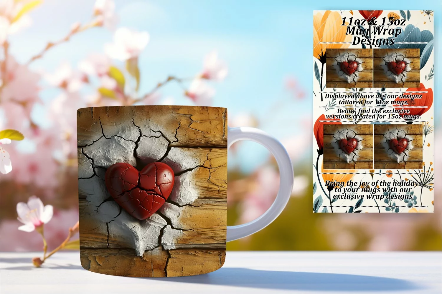 Coffee Cup Sublimation Design 11oz Mug Wrap 15oz Mug Wrap Valentines Mug Wrap 3d Mug Wrap 3d Hole In Wall Sublimation Glossy Sublimation 3d Heart Mug Wrap 3d Heart Sublimation Design