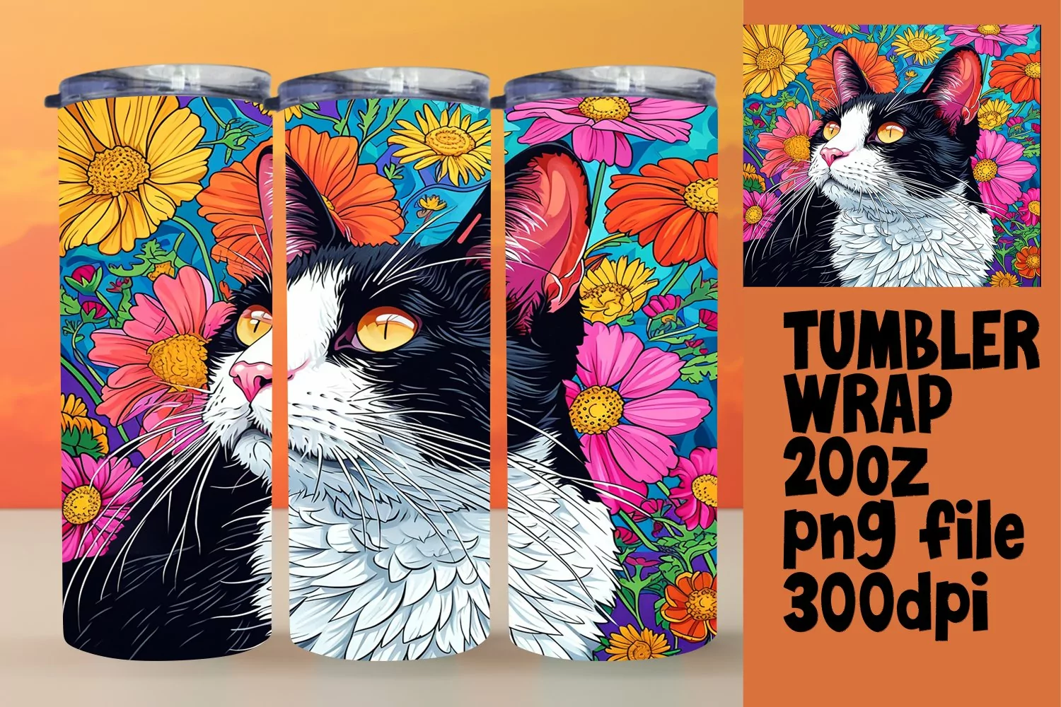 Cat Clipart Sublimation Design Cat Lover Png Black Cat Sublimation Straight Tumbler Skinny Tumbler Wrap Cat Tumbler Wrap Kitty Tumbler Wrap 3d Cat Sublimation
