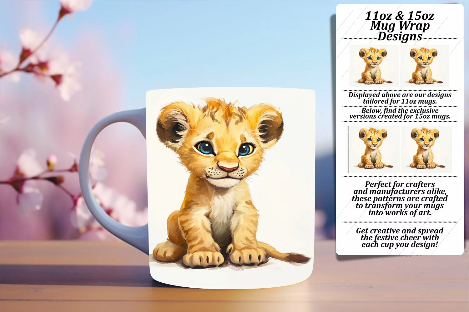 • PNG file for an 11oz mug, dimensions 8.5 x 3.5 inches, 300dpi.