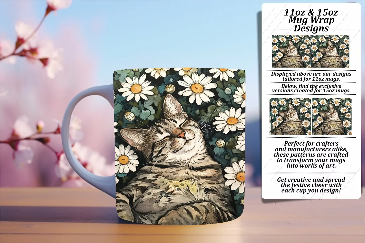 • PNG file for an 11oz mug, dimensions 8.5 x 3.5 inches, 300dpi.