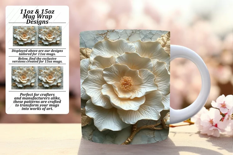 Flower Clipart Flower Pattern Coffee Mug Floral Design Sublimation Design Flower Sublimation Design 3d Flower Design 15oz Mug Wrap Flower Mug Wrap 3d Flower Pattern