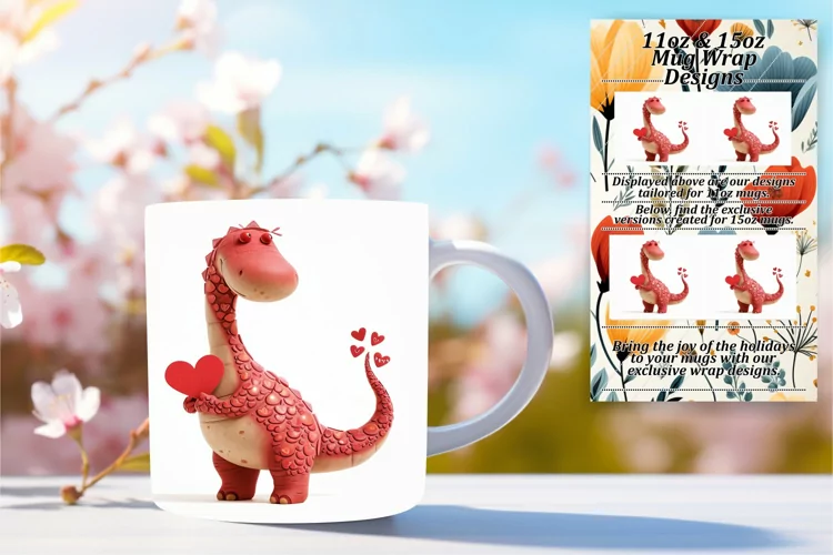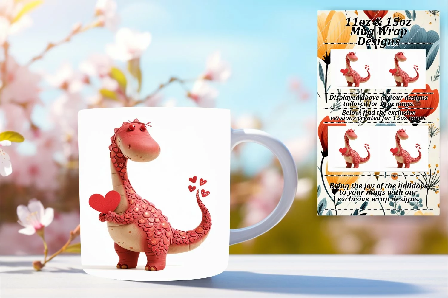 Coffee Cup Sublimation Design Dino Png 11oz Mug Wrap 15oz Mug Wrap Valentines Mug Wrap 3d Mug Wrap Glossy Sublimation 3d Heart Sublimation Design Valentines Dino Png