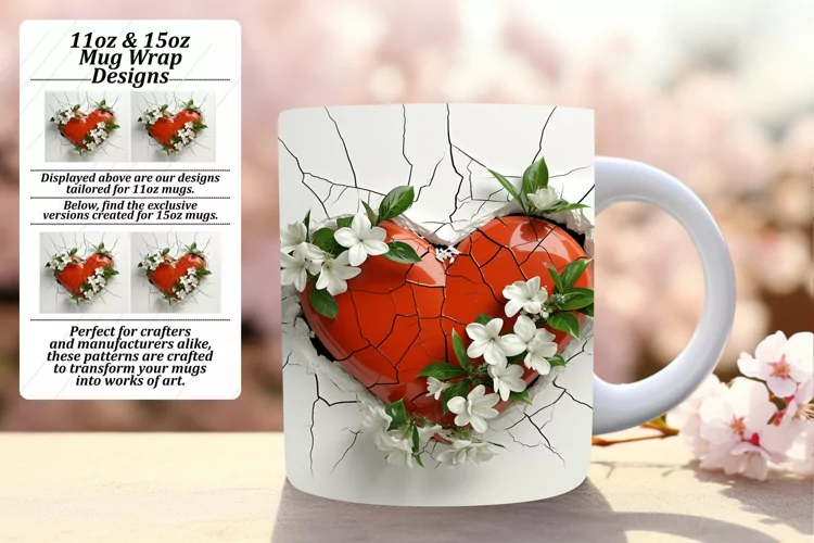 Coffee Cup Sublimation Design 11oz Mug Wrap 15oz Mug Wrap Valentines Mug Wrap 3d Mug Wrap 3d Hole In Wall Sublimation Glossy Sublimation 3d Heart Mug Wrap 3d Heart Sublimation Design