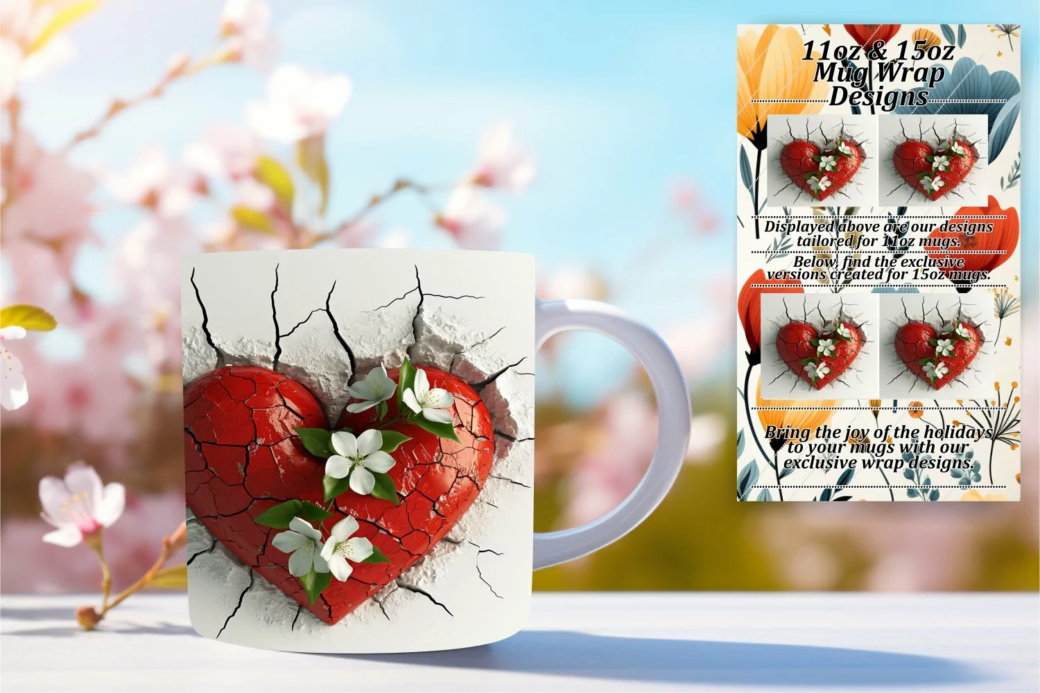 Coffee Cup Sublimation Design 11oz Mug Wrap 15oz Mug Wrap Valentines Mug Wrap 3d Mug Wrap 3d Hole In Wall Sublimation Glossy Sublimation 3d Heart Mug Wrap 3d Heart Sublimation Design