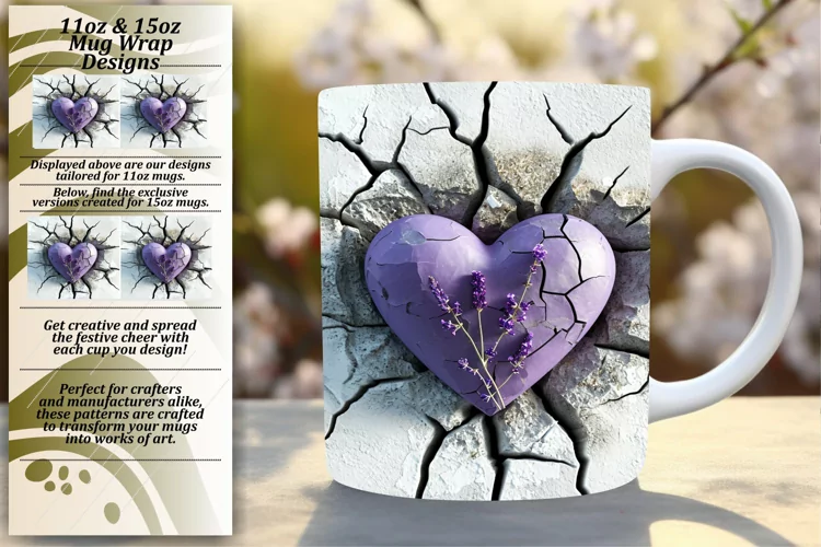 Coffee Cup Sublimation Design 11oz Mug Wrap 15oz Mug Wrap Valentines Mug Wrap 3d Mug Wrap 3d Hole In Wall Sublimation Glossy Sublimation 3d Heart Mug Wrap 3d Heart Sublimation Design